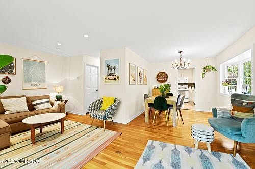 Beautiful, sunny 3 bedroom, 2.5 bath sought-after end unit with hardwood floors. Living room with wood-burning fireplace. Large lower-level family/bonus room. Private deck and patio off first floor living room and lower-level family room overlook idyllic green space. Dishwasher, Washer/Dryer in unit. Association heated pool. Conveniently located close to shops, highway, and train. Two reserved parking spaces (# 22 & 23 PLUS guest parking.