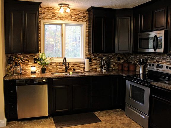 Updated contemporary home, designed to impress! Open living room, dining area and kitchen extends to further outdoor living & entertaining space on this huge wrap-around deck. Incredible dream kitchen was well thought out for both function and design with custom cabinets, a split-level granite counter and tiled backsplash. Huge family room offers gas log fireplace and accesses a lower level deck plus another large rec room that could be used for gaming, workout room or even as a home theater. Many updates. All it takes is just one look, and you'll be sold on this one!