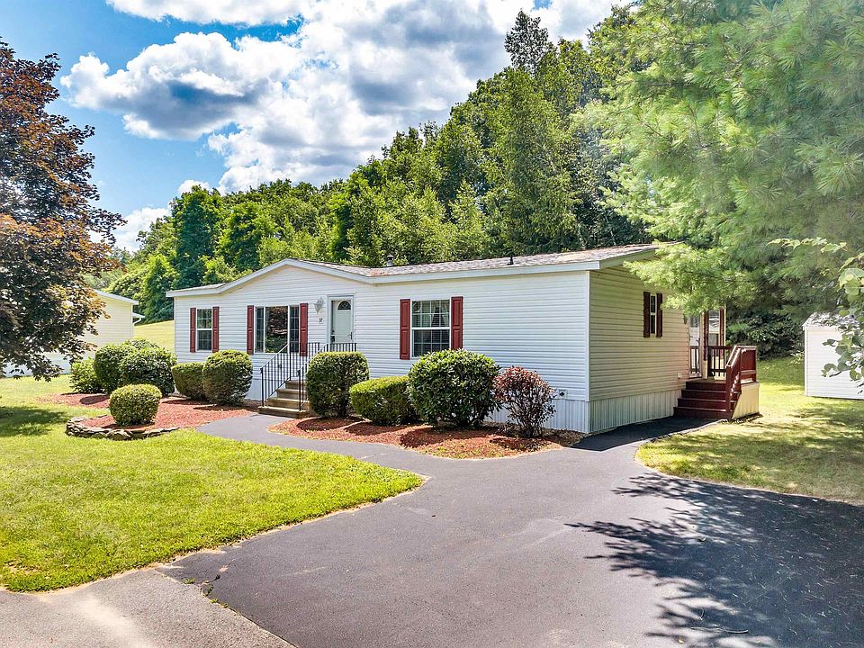 Welcome to Cocheco River Estates, a desirable 55+ community. First time offering for this meticulously maintained, spacious 3 bedroom, one-level home! Bright and sunny, easy one floor living with open concept kitchen, dining and living area. Kitchen offers ample cabinet and counter space and eat-in area with side door. Spacious living room with vaulted ceiling and laminate floor. Dining area with slider to the sun-room that overlooks the back yard area with a door to the brick patio and shed. Large primary bedroom with ¾ bath. Comfort of central air conditioning and forced hot air heat. Washer and dryer. Plenty of closet space and additiona storage in shed. $530 monthly fee includes lot rent plowing of roads, and resident access to community heated seasonal pool, clubhouse and exercise room. Located in the heart of Rochester with excellent location allows easy access to Route 16, shopping, restaurants and hospital. Close to mountains, lakes and beaches. Just minutes from beaches. Showings by appointment. Park approval is required. One pet allowed with park approval. Dog or cat under 25lbs.