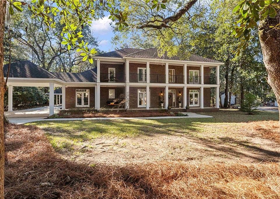 Welcome to Southern Elegance on the Bluff in Spanish Fort Estates. Custom built brick home situated on 2.25 acres with back porches overlooking the bluff and Mobile Bay. Convenient location with easy access to I-10 or the causeway to Mobile and just minutes from schools and shopping. Dual story porches make for stunning curb appeal adorned by mossy oaks. Plenty of room for the family with over 4600 sf of living space and parking for 3 cars with detached workshop/storage. 4 bedrooms with 2 separate living areas, office/study, upstairs den plus a flex room downstairs. Large kitchen with center island and breakfast nook banquette. High ceilings with detailed molding, hardwood & tile floors throughout, and tons of built-ins. 2 fireplaces (1 wood burning and 1 gas), 2 new water heaters and walk in floored attic space. Lots of room for outdoor entertaining with U shaped covered porch and patio with side patio for grilling. Spacious backyard with unlimited possibilities on a quiet street with very little traffic. Truly the best of both worlds with a convenient neighborhood location yet tucked away with privacy.Don’t miss this one of a kind property on the Eastern Shore! Buyer to verify all information during due diligence.