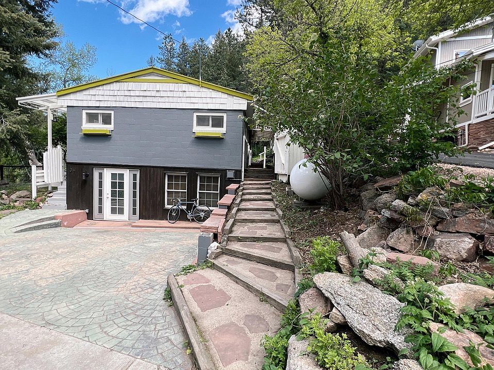 Gorgeous mountain retreat next to Boulder Creek! Feel like you are at a mountain vacation home! Recent walk-though video available through email! Brief ride up Boulder Canyon about 6 minutes / 3.5 miles, just beyond the Red Lion Restaurant and before Sugarloaf turnoff to a beautiful mountain/water escape. Located at the base of Magnolia drive in a small circular cul-de-sac of single family homes. Bus access available as well. Lower level is a separate, private 1BR1BA/studio with a kitchen/bar and free standing gas fireplace. Spacious backyard and separate dining/grilling patio and seating area with spectacular mountain and Boulder Creek views from gazebo. Neighborhood park for picnicking, enjoyment and swimming, steps away from front door. Plenty of parking and circular cul-de-sac was just repaved for easy access in and out. Large family room with numerous windows overlooking backyard. The kitchen is updated with maple cabinets and a skylight. Wood floors in living area. Open layout living area and dining with a cozy gas fireplace lit at the push of a button. Off of the kitchen, side door opening to fenced-in back yard. New pictures coming soon but the kitchen was remodeled in June 2025 with a new range, new sink/faucet, new dishwasher, and newer refrigerator, and LG Washtower in laundry room. Two of the three bedrooms are separated into a private suite with en suite master bathroom. Utility room includes newer LG Washtower washer/dryer, utility sink, and plenty of built in storage shelves. Most rooms have sounds of Boulder Creek as well as enjoy the sights and sounds from your private front yard or covered porch! *The garage is converted into a separate 1 BA/1BA studio/unit with no shared spaces or walls. Driveway is shared between the units. Both can be rented together if interested in an in law/nanny/work suite or just another space if interested or listing as posted in just for the primary house. Outdoor spaces are private to main home.