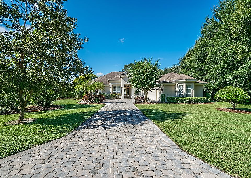 Welcome to this gorgeous Chain of Lakes pool residence located behind the security gates of exclusive Skidmore. Nestled on over 1/2 acre of prime Little Lake Eloise frontage this property offers a higher-standard of lakefront living. With 3796 sq ft of living area this home is ideally sized for those looking for a lakefront property on one level. You will find 4 full bedrooms, 4 bathrooms, dedicated office and an extra large bonus room ideal for a card room, man cave or craft area. Bedrooms are configured in a desirable triple-split plan for privacy while the formal living and dining rooms are ideal for entertaining guests and family. Spending time in the kitchen is an absolute pleasure with a complete stainless appliance package, seemingly endless amounts of cabinet and counter space, large granite island and a breakfast nook with tranquil lakefront views. Family room provides a gas fireplace, built-in shelving and corner sliders that fully recess for seamless outdoor access. Lots of architectural detail can be found throughout the home including stepped ceilings, curved walls, arches and columns. A southwest facing screened pool provides day long swimming and sunning while the two covered lanais provide a retreat from the heat. A large majestic oak frames the 125'' lakefront where you can hop in your boat for a day of cruising or skiing then stop by your favorite lakeside restaurant and finish the night off watching the Legoland fireworks by boat. Sounds too good to be true!!! ***SEE VIRTUAL TOUR***
