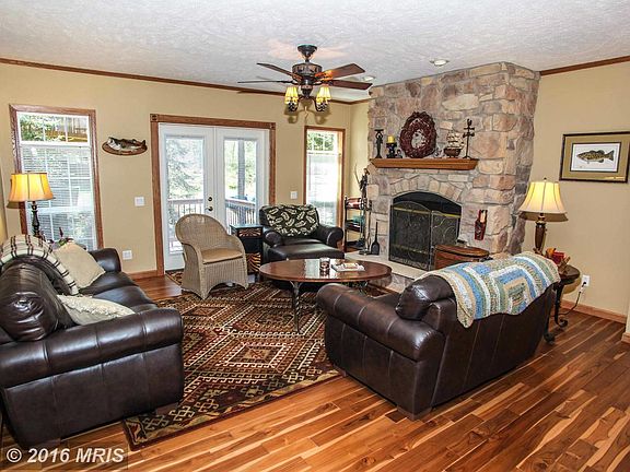 This beautiful one level home is pristine w/ wonderful flow. Large kitchen w/custom maple cabinetry, island w/pendant lighting, gas cooktop & wall ovens, Corian countertops. Living area with gorgeous stone fireplace & French doors w/ additional living area. Beautiful decking, patio & firepit to enjoy the beauty of Deep Creek Lake. Over 5 acres of community lake frontage & your own dock slip