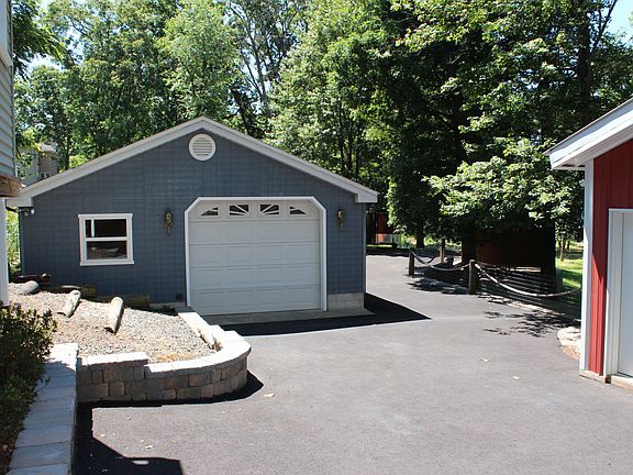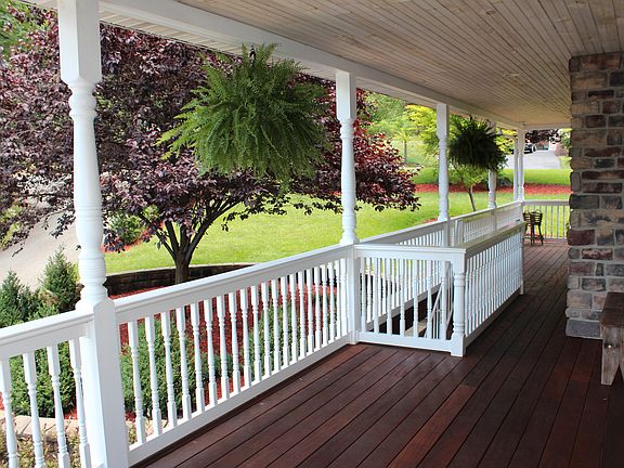 Welcome to this one of a kind over 3,000 sq. ft. colonial situated on approximately 1.6 acres with a lovely lemonade porch. Enter through the foyer to find the large living room with hardwood floors and fireplace, gourmet eat-in kitchen with custom cabinets, granite countertops and center island, office, full bathroom, 2 bedrooms and a sunroom. The stunning master bedroom suite with walk-in closet and master bath featuring jetted tub and natural stone shower stall, 3 additional bedrooms, a full bathroom and laundry room complete the second floor. Lower level includes mud room, den and plenty of storage space. One of the 4 separate garages features a large heated workshop.