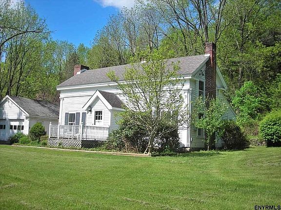 Attractive Colonial on 37+ acres with a 2-car garage, a brook, trails, and cleared pastures. Woods not logged since 1961 and include black walnuts. Vermont marble fireplace, first floor BR and bath, all three chimneys lined, 12" insulation in ceilings, 3 1/2 " in walls. Barn for stock or horses. Property includes acreage across road from house. Frontage on both Smith Rd., and NY 22. Many possibilities for this property. New well, septic and kitchen installed in 2019.