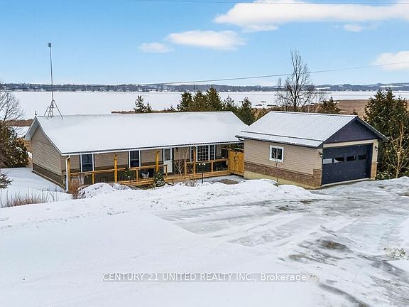 Waterfront walkout bungalow on Pigeon Lake with lock-free boating access to five lakes and routes to Bobcaygeon, Buckhorn, Bridgenorth, and Ennismore. Situated on a quiet cul-de-sac with a wooded area beside the property for added privacy, and approximately a 25-minute drive to Bobcaygeon, Lindsay, or Peterborough. This well-maintained home offers 3+1 bedrooms and 2+1 bathrooms with a bright, functional layout ideal for full-time living or a four-season retreat. The main level features an open, inviting living space with large windows capturing lake views and a walkout to a covered deck, perfect for outdoor dining and relaxing. The finished walkout lower level includes a generous recreation room with 10 ft ceilings, additional bedroom and bath, and access to a patio, creating excellent space for guests or family gatherings. Enjoy year-round living with endless summer and winter lake recreation, including boating, swimming, fishing, kayaking, ice fishing, skating, and snowmobiling. The waterfront yard features a dock, two sheds, partially fenced lot, and a detached garage, offering ample storage for vehicles and recreational equipment. A true four-season waterfront property with easy access to the Trent-Severn Waterway lifestyle. Please note: there is no sign on the property.