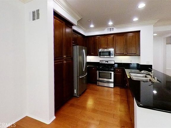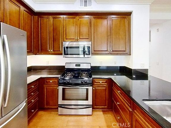 Located in the Woodbury community, this single level 1-bedroom, 1.5 bath condo features an open floor plan, wood flooring and newly tiled floors, fresh paint throughout, can lighting, inside laundry room and spacious 1-car garage. Kitchen includes a breakfast bar counter, stainless steel refrigerator, granite countertop, microwave and gas stove with oven. The large main suite bedroom features new tile flooring and a walk-in closet. The main suite bathroom features a double sinks and a bathtub with shower. The Community features a large sparkling pool and spa. Enjoy living close to shopping centers, entertainment and dining venues.