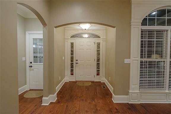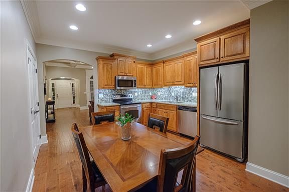 Gorgeous Craftsman Style 3 bedroom 2 bath home with hand scraped hardwood flooring, updated landscaping, fenced backyard w separate dog run, sodded yard, granite countertops, tile backsplash, and coffered ceiling in living room.