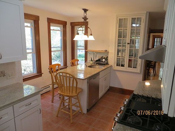 Comfortable recently renovated 2nd floor apartment with spacious kitchen, a center island with granite countertops and new cabinets. There are beautiful wood features in the dining room and fireplaced living room with built ins and study. The unit has three bedrooms and two full baths, including bathtub and shower stall. Master bedroom has additional sitting room with French doors. Large laundry room off kitchen. Fully insulated with newly wired electric and baseboard heating system with on demand hot water system. Central air conditioning. Owner takes care of landscaping and snow removal. Beautiful backyard with patio and large yard and one garage space, with two additional off street parking spaces. Basement storage available. Close to all major routes, shopping, stores, and schools. Public bus one block away Move right in condition!