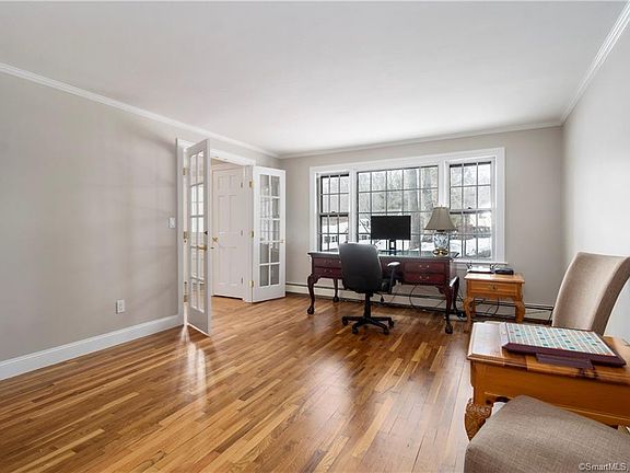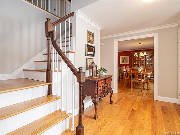 When you pull into the circular drive of this 4-bedroom 2.5 bath colonial you will want to call it home. From the foyer you will appreciate the freshly painted office/formal living room to the left. To the right is the formal dining room boasting hardwood floors with a large picture window. Your breathe will be taken away by the renovated custom kitchen in white and gray tones. This is the hub of the home, eat in kitchen with breakfast bar and plenty of storage for kitchen accessories. Kitchen leads to a massive family room with fireplace..and wait for it ..newly installed hardwood floors that have not been walked on! This room is sunny, but if that is not enough sun light for you, head out to the enclosed sunroom. Panoramic view of the back yard makes this room perfect for relaxation. Steps away from the kitchen is an addition double oven(electric), more storage, half bath and laundry. Upper level has 3 nice size bedrooms freshly painted with hardwood floors. The master suite is oversize with a new bathroom which includes double sinks and spa like shower with inlay tiles. If you need a project, the walkout basement awaits you. heated and plumbed for a bathroom. Current owner did not need the space, but it can easily be finished. Gas heat with the potential for 4 zones. Private back yard that the current owner enjoyed making their own honey and many memories. 37 Stag Lane has it all!