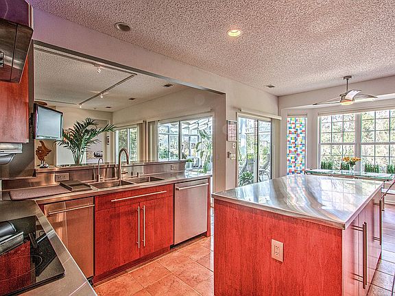 Wow!This is a showcase home with over 146K in upgrades!This True 3/2 with Office has NEW Eurotec Designer kitchen with Birch /cherry cabinets, Stainless Steel Countertops, top of line appliances, raised bar, trash comp., cooktop warming drawer, & Water Softener.New Brazilian Mahogany HardWood Floors throughout House.Office has tons of built in Cabinetry!Laundry room has extra storage and wash out sink.4 Seasons Room added 2012 with a PTAC, packaged terminal ac, tiled floors, and KOI pond! Great view of Private, professionally landscaped back yard! New Roof, HVAC,Water Heater. You CAN'T get this quality with NEW construction.See Upgrade Sheet