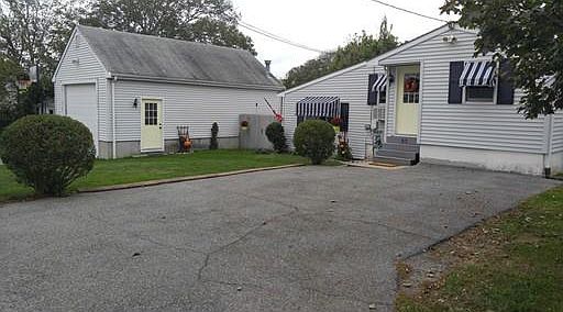MAN CAVE ALERT! This adorable 3 bedroom ranch style home boasts cathedral ceilings, knotty pine detail, first floor laundry, hidden playroom, and a sunken living room with slider to the BACKYARD OASIS. Composite deck leads to the pool area and access to oversized garage now converted to a very cool entertainment space (and is easily converted back according to your needs/wants). Large shed for storage and additional entertainment space. Pool installed in 2016. A MUST SEE!