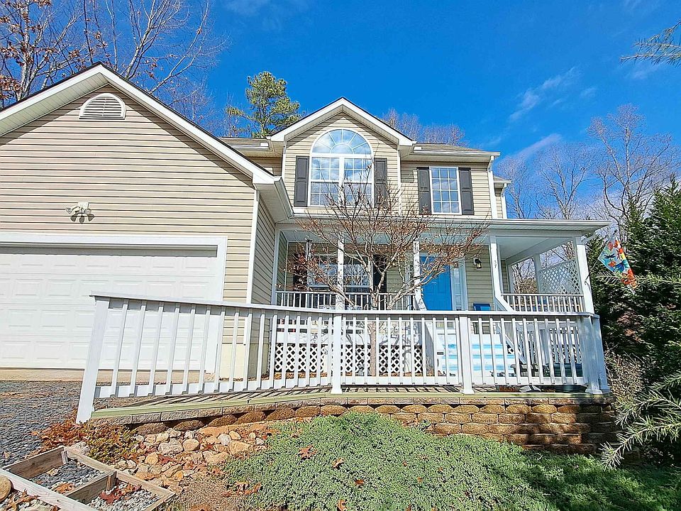 Great location at the Lake off of the main perimeter road near the main gate, main beach, clubhouse, & tennis/pickleball/basketball courts. This pretty home enchants you with a grand 2-story foyer bathed in sunlight. The main floor has a bright, open floor plan with some floor-to-ceiling windows. The foyer, dining room, great room & breakfast area have gleaming, solid oak flooring. The open kitchen with island has stainless steel appliances, high-end range hood, new quartz counters, sink, & faucet. Kitchen and laundry have new luxury vinyl flooring. The serene, vaulted primary bedroom suite indulges with a soothing, deep, jetted tub, separate shower & dual vanities. Relax on the front porch or back deck & enjoy the extensive landscaping with 3 seasons of stunning flowers. House-wide, fast, fiber internet, 2-zone Trane heat pumps, lifetime-warrantied gutter leaf filter system, fully fenced backyard, & 2-car garage. Basement has rough-in plumbing for a bathroom. Dining area is currently being used as a lounge & the vaulted guest bedroom with large Palladian window as an office.