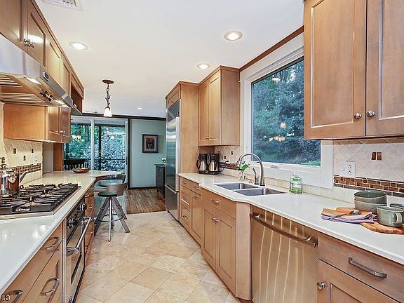 Extraordinary custom 3 bedroom 2.5 bath home on a stunning 10 acre wooded property. Featuring spectacular views throughout with floor to ceiling windows, every room has been updated or renovated. The kitchen now features Limestone flooring, breakfast nook, wine fridge, Viking appliances and Sub-Zero fridge. Adjacent to the kitchen and dining room is a tranquil screened porch. The sun-filled master showcases cathedral ceilings, an amazing walk-in closet and sophisticated master bath highlighted by a double, marble topped, cherry wood vanity, jetted tub and oversized glass tile shower. The cozy, serene family room is anchored by a local quarried stone fireplace. Enjoy gorgeous outdoor views on the multi-level Israeli Limestone patio with fire pit and hot tub while glimpsing the vegetable garden and small pond through the lush vegetation.