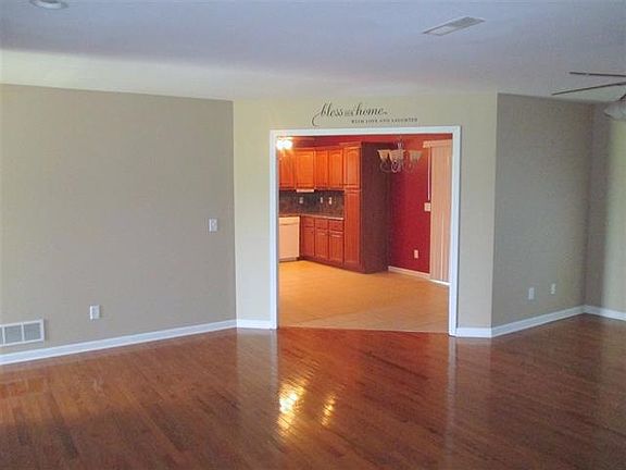 Open floor plan with a split design! Beautiful kitchen with appliances, tile floor and ceiling fan. Spacious living room open to the kitchen with hardwood floors. Master bedroom features trey ceiling with fan and new carpet. Bonus room offers a walk in closet. The large lot features a screened in back porch, double concrete driveway, 2 car garage, gravel pad and beautiful landscaping.