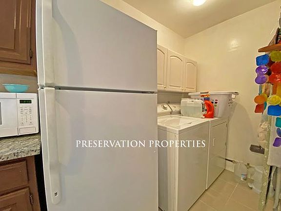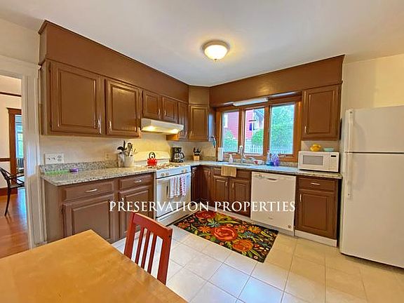 Oh so lovely 1st floor, 2 bedroom apartment in convenient West Roxbury location. Sunny and happy feeling living room with ceiling fan opens to formal dining room featuring large built in China hutch. Hardwood floors throughout apartment. Clean, updated eat-in-kitchen is fully applianced and also has washer/dryer included! 2 nice sized bedrooms and 5 closets throughout the unit. Large deck in the back to be enjoyed in the Summer and front porch as well. Available for August 1st. no cats allowed , No medium or big dogs