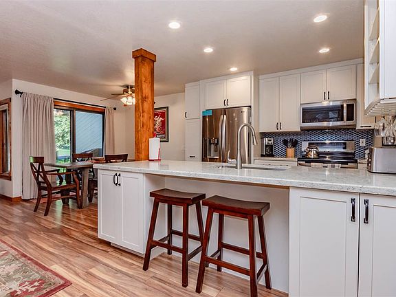 This home has been beautifully and thoughtfully remodeled from the bottom to the top. The floors are Dream Home laminate with a beautiful wood design, and they are very durable and water resistant. The kitchen features custom solid wood cabinets, beautiful and durable quartz countertops, a heavy gauge stainless steel sink with a smart faucet plus new LG Stainless Steel appliances. The bathroom has travertine tile, a new counter, new vanity and new sink. Also, in the bathroom you will find an expanded walk-in shower with 3/8" glass wall and door. The entire home has custom solid wood storage cabinets, new paint, new doors (solid core, Knotty Alder), all new trim with Knotty Alder wood as well. In an alcove of the bathroom you will find a new, stackable front-load washer & dryer. The water heater and sink disposal are only about 4 years old, and the sofa, recliner and kitchen table are also nearly new. In addition, the whole is freshly painted and new window coverings (blinds & curtains) were just installed. The NEST thermostat in the Living Room means you can easily warm your home ahead of time for yourself or guests! It's located in the idyllic Snowcreek I, a popular condo complex close to the meadow with stunning views of Mammoth and the surrounding mountains. This unit has a pretty, grassy area just outside the sliding glass door and deck and it's close to the hot tub and sauna. Fabulous rental income as well, ($26,911 in 2016, before the remodel; 2017 - $32,036 - was off the market for 3 months while phase one (bathroom) of the remodel was being done; 2018 - $24,182 - and was off the market for 4 months while the main remodel was done (all but the bath); 2019 YTD to July - $21,693!