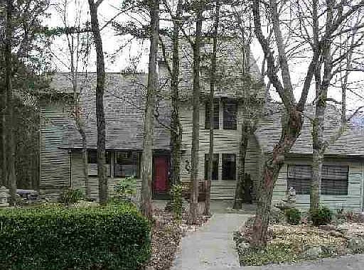 Lake view! Beautifully maintained contemporary home with unique cottage style. To add to the loveliness of this home in the front yard is a pond with natural stone surround and a patio to enjoy the peaceful setting. Home is appointed with shutters, architectural beams & windows and open to the second level. All the common living areas, bedroom & bath are on the main level. The living room & kitchen have a lake view as does the adjoining screened in covered deck complete with outside BBQ area. This bedroom has an exterior entrance with a covered walkway to the two car garage. The kitchen has an island topped with tile housing the downdraft cook top and extra seating plus a wall of cabinets making for ample storage. The master bedroom on the mid level has a lake view as does the spacious bath. The bath has double vanities, separate shower, tile floor & Jacuzzi tub. The next level up has a lake view room currently used as an office/TV room. The view from the top floor is awesome!