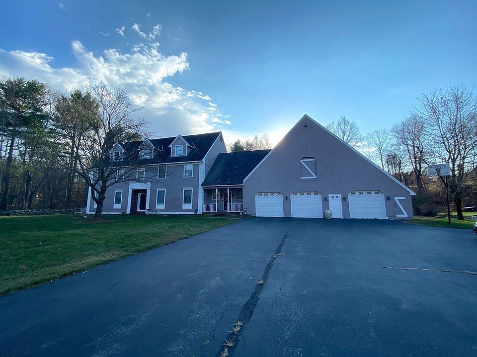 This stunning oversized colonial with 2 separate front entrances and an impressive attached 6 car tandem garage has lots to offer. The property's unique layout allows for home office, home schooling or perhaps extended family living. Additional SqFt above the garage, large walk up attic and basement to finish off if you so choose. The eat-in kitchen and cozy fire placed family room has an open floor plan perfect for gatherings. The kitchen has ample storage space including a walk in pantry and large island. This spacious home offers a formal fire placed living room and formal dining room as well. The owners suite has cathedral ceilings, 2 walk-in closets, double vanity bath, private toilet room, along with soaking tub and a stand up shower. All bedrooms are extremely spacious and bright. Relax in the sunroom that exits to the fenced in back yard with mature plantings, in-ground gunite pool and spacious patio. Westford is ranked in the top 10 school District in Massachusetts for 2020!