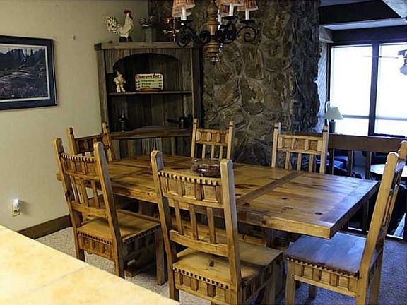 New Listing! Spacious condo just minutes from world class ski areas. Summer activities include hiking, biking, golf and boating on Lake Dillon. Unit comes furnished and includes 4 bedrooms (3 with own private deck with outstanding views), 2 rustic stone wood burning fireplaces (one in the master bedroom), flat screen HD TV's and custom window treatments throughout. Hot tubs in common area. Must see! $379,900