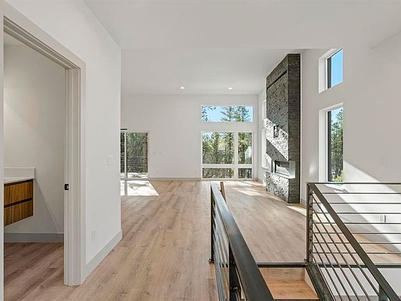 Sutter Homes' newest project is COMPLETE and ready for its first owner! Schedule your showing now to see this 2,506 SF home with a wide open floor plan that can easily be lived in solely on the main walk-in level. From the entry foyer, you're welcomed into the great room that opens into the kitchen with bar seating, dining area, and on to the covered deck constructed of durable composite decking and a welded steel rail system. Between the great room's built-in gas fireplace and windows that overlook a pine forest of county owned land that abuts your backyard, you'll have a hard time choosing between relaxing on the couch or the deck! The primary bedroom has a generously sized walk-in closet, bath with dual vanities and dual showers, and its own private access to the deck. The elegantly designed open stair case with full length corner windows takes you to the lower level where you'll find three additional bedrooms, an open study, additional living room/flex space, and two full bathrooms. FINISHES/FEATURES: Interior finishes include French white oak hardwood flooring throughout the living areas and primary bedroom, Italian made tile in primary bath, lower level baths, and laundry, and solid surface countertops throughout the kitchen and baths. The home is serviced with Hunter Douglas mini splits with wall mounted head units for heating and cooling, and a Zehnder ERV (Energy Recovery Ventilator) to both recapture energy lost in conventional builds and provide clean, tempered air to the home. Exterior elements include exposed timber rafters, Jeld Wen windows, and a stylish mix of sidings including board and batten wood siding, stucco, multiple styles of metal sections, beetle kill tongue & groove, and stone post bases. ABOUT THE BUILDER: Sutter Homes provides A Difference That Matters and is known in the area for building high performance, low energy homes with special attention paid to building sciences, reducing your carbon footprint, optimizing indoor air quality, and providing the highest quality overall home health.