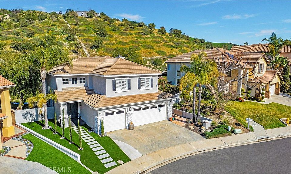 STUNNING LUXURY HOME NESTLED WITHIN THE HILLSIDE COMMUNITY OF FOOTHILL RANCH IS TRULY MODEL PERFECT! The eye catching curb appeal is showcased with new turf, custom hardscaping, a stone path with beautiful landscaping that surrounds the home. Step inside the double door entry to soaring ceilings, a grand stairwell, an open concept and custom touches throughout. The highly desired floor plan includes 5 bedrooms/3 baths with a loft area and has been completely customized and meticulously designed. Designer touches include faux beams in formal dining room, feature walls in living and bedrooms, unique floating shelves, stylish built-ins and engineered flooring throughout. The chef in the family will love the sleek kitchen design featuring crisp white cabinetry, quartz counters, center island with seating, stainless appliances/hood, and added upper and lower cabinetry. The adjacent family room is light and airy boasting floating custom shelving, built-ins and is accented with a cozy fireplace. Looking for a retreat to relax with friends? The main floor bedroom has been converted into a den with built-in wet bar, a dual temperature wine fridge, beverage fridge, custom shelving/cabinets, a feature ceiling and glass barn doors with an adjacent full bath. Upstairs, the private primary suite offers vaulted ceilings, a feature wall, and spectacular canyon views. Enter the spa-like bath featuring new flooring, soaking tub, walk in frameless shower with beautiful tile design, smart mirrors, and sliding panel doors that open to his-and-her walk-in closets. An upstairs loft is ideal for a home office or bonus area for the kids. 3 additional bedrooms share a remodeled bath with a private shower area. Love to Entertain? Enjoy the privacy of outdoor dining or just relax with friends around the fire table while enjoying amazing hillside views. In addition to a new AC and intake the home has a smart nest thermostat and Lutron smart switches downstairs. The final touch to this immaculate home is the pristine 3 car garage, complete with epoxy flooring, upper cabinetry, new garage doors, 220 AMP outlets, and overhead LED lighting. Enjoy all that Foothill has to offer including hiking and biking in surrounding Whiting Ranch, a community pool, spa, clubhouse, multiple parks, sports courts, and tennis. Ideally located within walking distance to Foothill Ranch blue ribbon school and library, shopping, local restaurants, Irvine Spectrum and toll road access. This one is a MUST SEE!