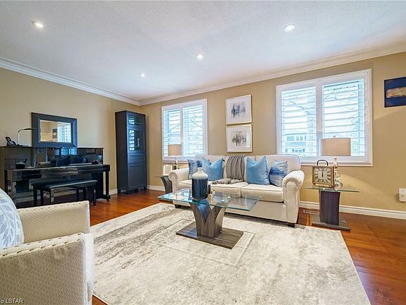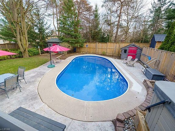 Your backyard POOL PARADISE awaits! With 4 HUGE bedrooms and 4 updated bathrooms plus OVER 2400 SQUARE FEET of living, this full family home can only be better by having a southern exposed sun-soaked SALT WATER pool (liner '23 and pump '22) with stamped-concrete lounge areas, and 15'x21' glass-railed raised sundeck with canopy overlooking your FULLY FENCED treed backyard with sprawling greenspace. Set upon one of Byron's most favoured meandering tree-lined streets, this home has it all: Three expansive living areas, a deep welcoming foyer, covered front porch, eat in kitchen with GRANITE ISLAND and built-in appliances, 2 patio door accesses to rear gardens, Hunter Douglas window coverings, hardwoods & ceramics, two cozy fireplaces (gas & electric), formal dining area, and LOADS OF STORAGE SPACE! Wood grain plank flooring throughout lower level featuring exercise room/den + 3 pc bath with marble vein tile, quartz vanity & chic glass shower + bright recreation space for all your imagination! Further boasts: crown mouldings, UPDATED SIDING, EAVES and TROUGHS, almost all windows replaced, updated light fixtures and décor, waterproofed basement, on-demand hot water, solar heat panels for pool, NEWER SALT WATER CELL GENERATOR, pool house pump and storage shed PLUS natural gas line for BBQ. An ABSOLUTELY PERFECT LOCATION in cherished Byron, just steps away to parks and only minutes to London's endless river paths of Springbank Park and Warbler Woods' Carolinian hiking trails. Close to top schools, library and shops, plus the cafés and dining of Byron Village. Truly a pleasure to present. Easy to view. Come be impressed!!!