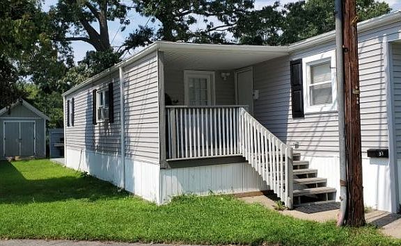Newer everything! Lovely covered porch. Large Living Room with Dining Area, plus Breakfast Bar. SS Refrigerator, Stove Oven, Microwave, Dishwasher. Granite Counters. Living Room carpet being removed and updated to new flooring. Master BR en Suite, plus two more Bedrooms and a Full Bath with Tub Shower and two Sinks. Large Hallway with Laundry Area and Washer Dryer. Bedroom egress to newer-built steps and Deck Patio at rear. Huge custom shed. Master Bedroom has own access to front porch. Owner says never flooded. Monthly fee covers Taxes, Septic, Water, Garbage, Land Lease.