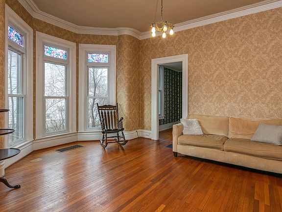 The charm of yesteryear, but all the updates and conveniences of today! Formal front entry with sweeping staircase, extravagant ceiling heights, and original woodwork throughout. Gorgeous floors, doors, and fireplace. Large barn with 2nd floor loft, deep/private fenced lot, and an adorable koi pond. Watch the deer graze in the field as you rock your cares away on you expansive front porch, listening to the river babble. And NO home is SAFER than this, with the police station right next door! Only minutes from Corning, for a short commute to work! So much space, and no shortage of charm.