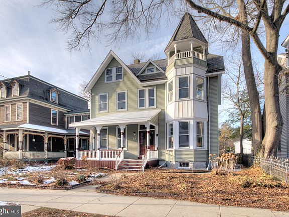 Come take a look at this newly refurbished Queen Anne style historic home situated in downtown Mt Holly. This magnificent home features original hardwood flooring throughout the home with beautiful original inlays, let's stroll thru the interior front thru etched glass french-doors opening to the home if only walls could talk! To the left is a formal dining room with gas fireplace faced with an intricate cooper/brass fireplace surround that opens to an upgraded nicely appointed kitchen with new appliances, large center island and tons of cabinetry storge, on the other side is an oversized laundry room with ceramic flooring, laundry shoot from upstairs in the master bedroom into a closed cabinet in the laundry room, off from the laundry room is the mud room with shelves and cubbies for shoes, scarfs, storage that opens to the partially fenced rear yard with ramp access to and from the home to ramp access to a 2 car detached garage. Back inside upstairs features 6 full bedrooms one being a master suite with front balcony and separate shower on the 3rd floor with huge walk in closed anyone would welcome! All bedrooms are carpeted neutral, all bathrooms are fully upgraded, a little old and new meld. Do not wait to own a piece of this town's history owned by prominent occupants once upon a time. Easy to show, on combo lockbox. Enjoy the virtual tour! Call with any questions.