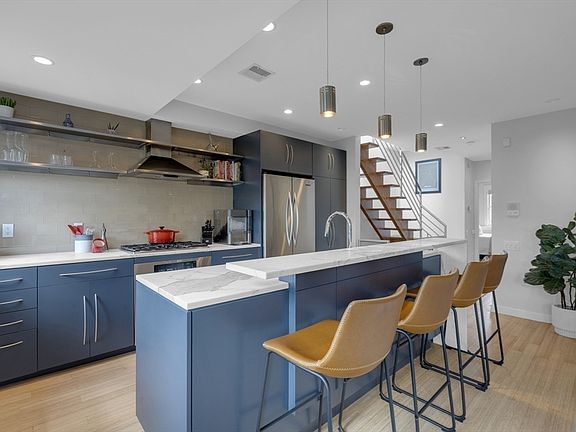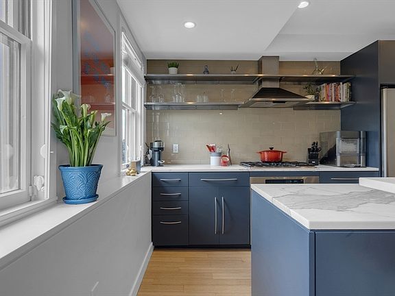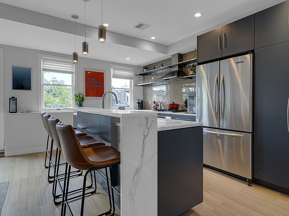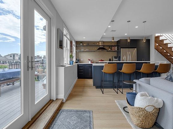 If you love fine finishes and unmatched outdoor space, this 2 bedroom Upton Street penthouse is for you! Enter to wonderful open living/dining/kitchen with gas fireplace and custom built-ins. Center-island kitchen features marble countertops, gas cooking and high-end stainless steel appliances plus convenient breakfast bar. Step out from your living space to an extra large deck through glass French doors. Two generous bedrooms including a bow front primary with direct access to marble bath with double vanity, walk-in shower and skylight. Second bedroom can be comfortably furnished as a bedroom or home office. Top it off with a full custom built staircase to almost 500 sq ft private roof deck with panoramic skyline views. This home features gas heat, central AC, in-unit laundry and both decks are plumbed for gas grills. This stunning home right in the heart of the South End's Eight Streets neighborhood has been tastefully updated and impeccably maintained.