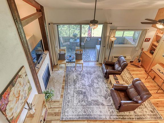 Furnished One Bedroom, 2 Bathroom condo centrally located, with amazing views of Pinon Lake, Golf Course, and Pagosa Peak. This condo was remodeled in 2018, offering a more open kitchen space, full-sized appliances, laminate engineered wood flooring, carpeted stairs and bedroom, a gas fireplace in the living room, and other minor but efficient changes throughout. This unit is an upstairs unit, offering optimal views of the surrounding area. There is a screened-in balcony, perfect for keeping all bugs and critters at bay. This unit has extra storage under the stairway and in the attic along with the 8 ft storage closet in the hallway and the exterior storage closet in the common area - this condo is built for comfortable living! There is a coin-op laundry facility used by all tenants/owners. HOA dues are $286 a month that includes landscaping, building maintenance, snow removal, trash removal, water, and sewer! Utility costs will be extremely low, typically under $75 a month in the warmer months. If you are looking for a property in Pagosa Springs that offers you convenience of location and is low maintenance, you need to come see this charming condo! Included items upstairs queen bed frame,dresser, chest of drawers, Armoire, night stands and lamps, floorlamp Downstairs, 4 dining chairs, dining table, bookcase, squre table w/ glass top, stool at bar, brown cabinetwith sliding doors, outside patio table and chairs, wooden cabinet on porch, large living room rug, floor lamp, lamp on table