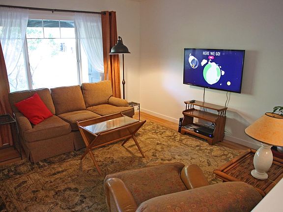 Just wrapping up a major Remodel of Bathrooms!! (Photos have not yet been updated.) This 1940's home is super comfortable and Fully-Furnished. The hi-light of the home are the outdoor entertaining patios, decks, arbors and lawns... great fun!! The Master Bedroom with ensuite remodeled Bath opens out onto a private courtyard with glassed french doors. Open Living, Kitchen & Dining Nook offers plenty of space to spread out. Two large bedrooms flank the opposite side of the house a nice bathroom and plentiful closets, with all-new Bath. Laundry in the home; plenty of storage; two-car open driveway parking. And located on one of the most charming quiet streets in Calistoga... small-town charm, with great boutiques, cafe's and markets. Ask about two other homes also available in Calistoga, even larger and nicer than this one Call or answer this ad: but describe your needs and term requirements!! No Term less than 30 Days please. No Term Less than 60 days; Length of Term flexible depending on Renter needs. Utility Fee, and/or Renter takes responsibility for utilities. Furnished home only. Pets OK. Other Rental Home options available.