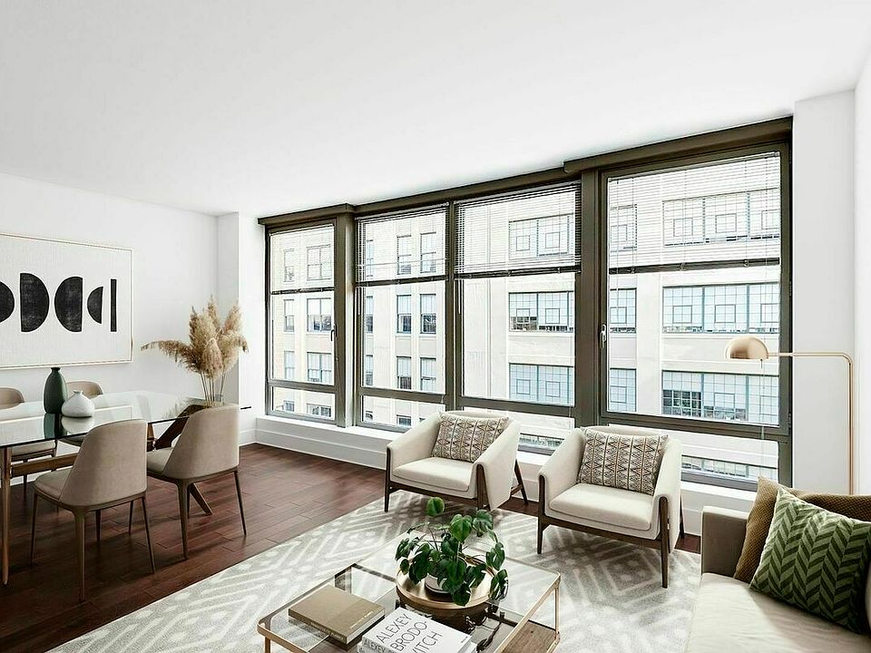 Sprawling 2 bedroom apartment with direct elevator access and separate living and sleeping areas. Apartment features a spacious living/dining area with lots of windows, an over-sized u-shaped kitchen with granite counters and eating bar, walk-in-closet and en-suite master bath and an in-unit washer/dryer. Located in the heart of the vibrant Flatiron District, Echelon Chelsea offers a boutique collection of luxury apartments. Residents enjoy a 24-hour attended lobby, outdoor sundeck, fitness center, massage room and clubroom with billiards, lounge, and a demonstration kitchen. Pricing and Incentives subject to change. Floor plans and photos may be of a representative unit.