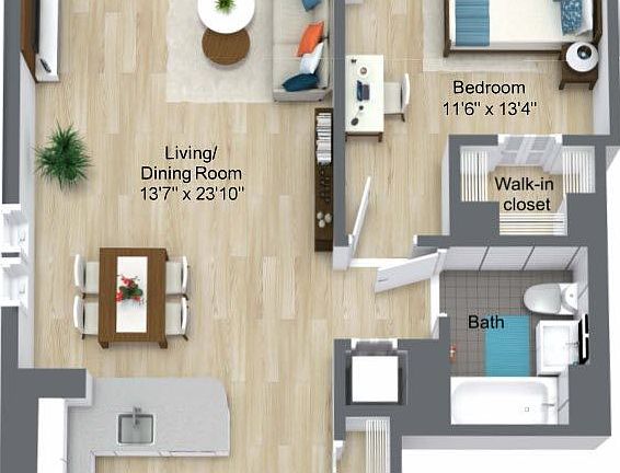 Starting at $7078 Great 1 bedroom apartment with 2 exposures, large u-shaped kitchen with granite counter tops, stainless steel appliances, and eating bar. Apartment also features an in-unit washer/dryer, walk-in-closet, and wood floors in living areas. Located in the heart of the vibrant Flatiron District, Echelon Chelsea offers a boutique collection of luxury apartments. Residents enjoy a 24-hour attended lobby, outdoor sundeck, fitness center, massage room and clubroom with billiards, lounge, and a demonstration kitchen. Prices and incentives subject to change. Floor plans and photos may be of a representative unit.