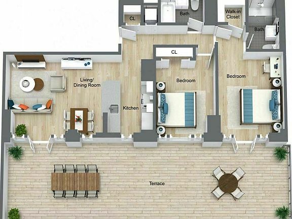 Starting at $9601.00 per month. Bright 2 bedroom apartment with private terrace, large L-shaped windowed kitchen, and spacious living area. Apartment also features a windowed bathroom with oversized shower, wood floors in living areas, and an in-unit washer/dryer. Located in the heart of the vibrant Flatiron District, Echelon Chelsea offers a boutique collection of luxury apartments. Residents enjoy a 24-hour attended lobby, outdoor sundeck, fitness center, massage room and clubroom with billiards, lounge, and a demonstration kitchen. Pricing and incentives subject to change. Photos and floor plans may be of a representative unit.
