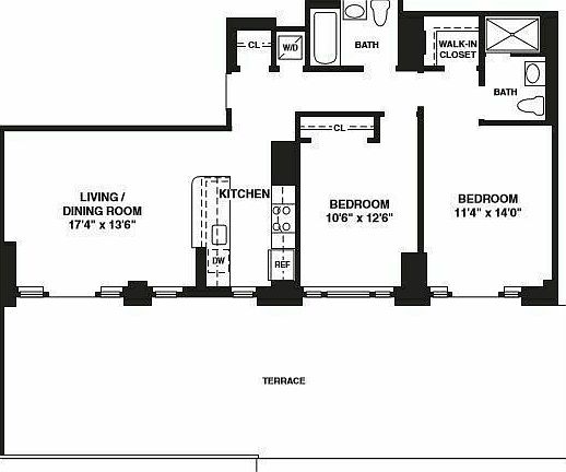 Bright 2 bedroom apartment with private terrace, large L-shaped windowed kitchen, and spacious living area. Apartment also features a windowed bathroom with oversized shower, wood floors in living areas, and an in-unit washer/dryer. Located in the heart of the vibrant Flatiron District, Echelon Chelsea offers a boutique collection of luxury apartments. Residents enjoy a 24-hour attended lobby, outdoor sundeck, fitness center, massage room and clubroom with billiards, lounge, and a demonstration kitchen. Pricing and incentives subject to change. Photos and floor plans may be of a representative unit.