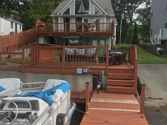 Beautiful contemporary you must see. This home features a beautiful open kitchen with granite throughout, Glass sliders overlookinhg the lake from living room. Private master suite with french doors and deck on 2nd level, overlooking living room with view of the lake.Lower level features 1 bedroom, summer kitchen, full bath with walkout to beautiful yard. Heated 2 car garage and dock that never needs to be removed from water. Excellent location and beautiful views of south pond on Webster Lake. and your own boat ramp for convenience, and a dock that never has to be removed. The lower level in this contemporary could also be used as an in-law apt.