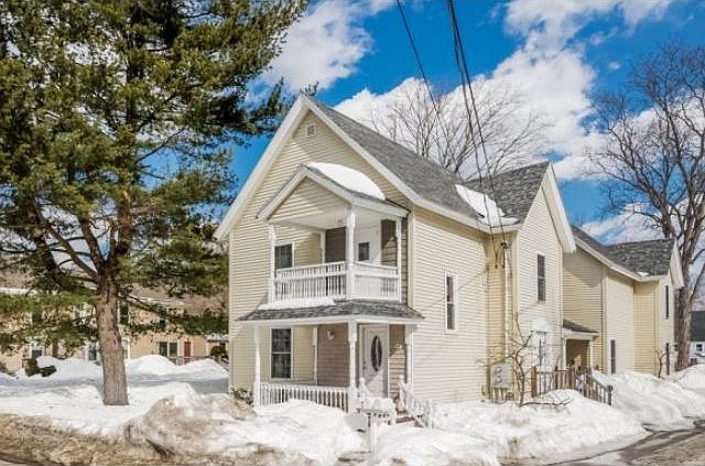 New Reduced Price! Completely rebuilt in 2006. Modern, open concept but with the charm of the original era. Enjoy the central A/C, a modern kitchen with maple cabinets, corian countertops, hardwood floors throughout; 1st and 2nd floors. Sit and watch the world go by from the front porch on the main level or the balcony on the 2nd level. You even have a full basement for storage and this unit has a deeded exclusive right to build a garage. Great location - walk downtown or to the train station. And .... a nice low monthly condo fee of $150!