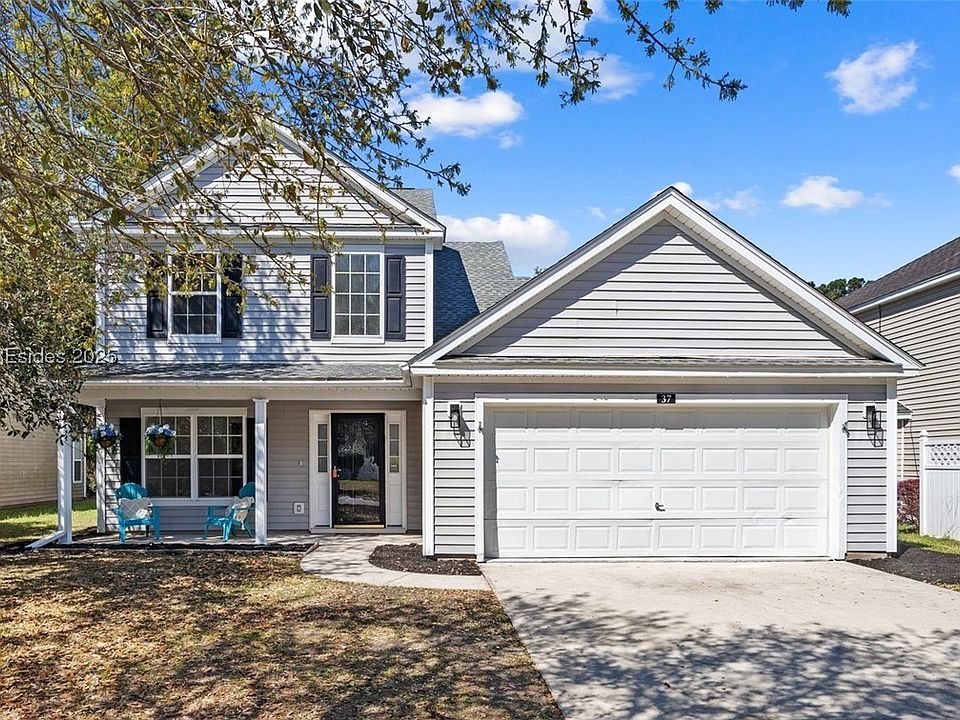 Location, Location, Location! This stunning 4-bedroom, 2.5-bathroom home with a 2-car garage, HVAC (2019), Roof (2020), & hot water heater (2019) is move-in ready and waiting for you! Just painted and featuring brand-new luxury vinyl plank flooring & new elegant light fixtures, this home is bright, inviting, and full of lowcountry charm. Primary suite on the main floor offers a spacious walk-in closet & bathroom. Home's location is unbeatable—just minutes from Old Town Bluffton, top-rated schools, shopping, & dining. Enjoy access to sidewalks & trails, swimming pool, pavilion, & playground. This one won’t last long!