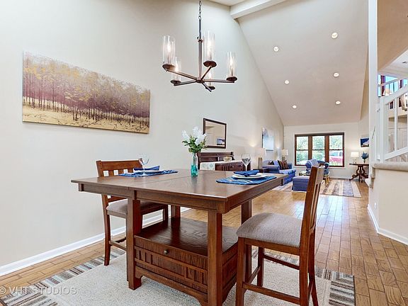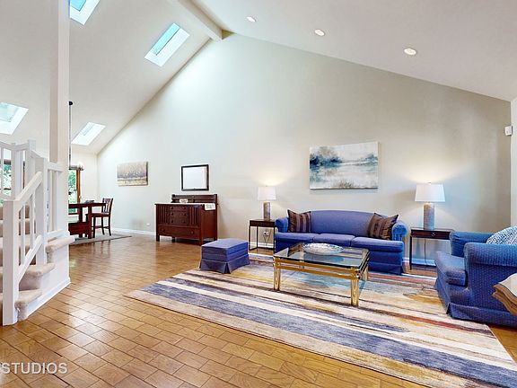 Sun-Drenched Elegance in Stevenson School District! Step into this open, bright, and beautifully updated home featuring vaulted ceilings in living and dining room with skylights and an open floor plan. Recent updates and newer windows enhance the light and airy feel throughout. Key Features: 1st Floor Master Suite: Walk-in shower, double sink, and spacious walk-in closets 2nd Floor: Two additional bedrooms and a versatile den. Enclosed Back Porch: Perfect for relaxing and entertaining. 2-Car Garage: Ample storage and convenience. Enjoy maintenance-free living with access to a sparkling pool and clubhouse. Located close to shopping, restaurants, the Marriott Theater, Metra to Downtown Chicago and Interstate access, this home offers the best of convenience and comfort in the acclaimed Stevenson school district.