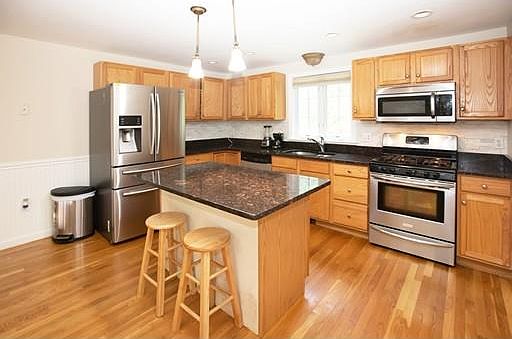 Wonderfully planned layout for easy living in this charming newer Colonial home. An expansive farmer's porch beckons for getting to know your neighbors. A large rear deck for private times and relaxing evenings overlooking wooded tranquility is a dream! Take advantage of the easy access to the newer commuter rail station into Boston & simplify your life and "down-times". Neighborhood is lovely, w/comparably-valued and well-maintained homes and a quick ride to shopping of all kinds. Inside you'll find a nice, open floor plan, the benefit of C-Air, 3 great-sized bedrooms, a first floor laundry room, and a granite kitchen! The finished lower level room is wonderful with tile floor and, in addition, large storage space. Concerned about your cash-flow? This home just received a new roof this year by one of our area's highly regarded roofing companies and a new hot water heater! This is your chance to spread out, get rid of HOA fees, and build equity in your future!