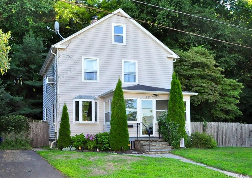 4 bedroom, 2 bath Farmhouse in the heart of Simsbury. Within walking distance to outdoor concerts, shopping and restaurants. 1st floor offers an open floor plan with hardwood floors in the living room and dining room, granite countertops in the kitchen and a full bath. Second floor includes 3 bedrooms and a full bath with hardwood throughout and the 3rd floor can be used as a bedroom and or office and even a playroom. The back yard is fully fenced and ready for you to enjoy your privacy. The property also includes a separate garage that is located off the property at 41 woodland. It has a new garage door. There is an additional tax of 82.00 per year for the garage. Recent upgrades include New city water pipes on the street. Newer water heater, All new copper pipes in house, New Chimney flashing , cap and damper. New lighting fixtures throughout the house. House was professionally painted in the Living Room, Dining Room, 2nd floor hallway/ bathroom and 2 bedrooms