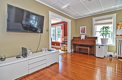Appealing Colonial offers all you need for comfortable living + a highly desirable location that simply cannot be beat! Sited on lovely side street tucked off Forest Street, you???ll find Medford Sq., buses, Chevalier Theatre & restaurants close, while you enjoy near instant access to Route 93 & Boston less than 6 miles away. Step inside to nicely sized enclosed porch & bright foyer that leads to lovely LR that opens to DR with built-in china cabinet. Distinctive coffered ceilings & hardwood floors are found in both rooms, plus generous windows that let in lots of natural light. Spacious kitchen boasts ample maple cabs, stainless appliances, granite counters & island, plus access to nice deck, the perfect place to relax on warmer days. Half bath found on 1st level will also be appreciated.Step upstairs where 3 bedrooms, hardwood floors, plus full tiled bath await. Ample storage including in basement, small yard with shed & off-street parking complete this find you'll want to call "home".