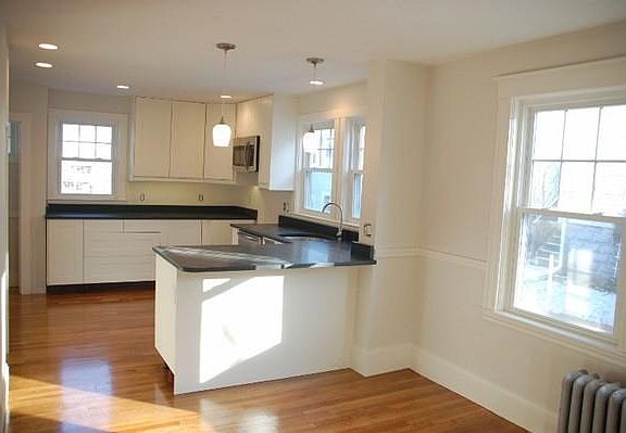 Bright, completely renovated first floor 2BR, 1BA apartment in Belmont on the Cambridge/Watertown line. The inviting open layout features new windows, new kitchen with stainless appliances and granite counter-tops, refinished hardwood floors throughout, a newly renovated white bathroom, and ample closet space. The rental includes parking for 2 cars and a back porch for warm summer days. Garden space available for the green thumb if desired. There is basement storage and a washer / dryer for exclusive tenant use. Back patio ready for al fresco dining on these warm summer nights! Neighborhood block party happens annually and tenants are encouraged to partake in this wonderful community. Bus at the end of the block takes you to Harvard square in minutes. Blown in insulation ensures efficient and comfortable living in winter and summer. Electric car charging plug available by request. Certified Deleaded
