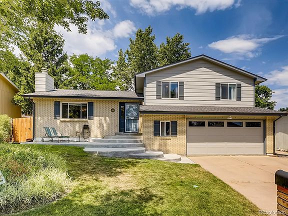Welcome Home! This home is stunning from the moment you drive up. The exterior has been well maintained with new high impact resistance roof, new gutters, freshly painted exterior home and newly poured expanded front porch and back patio. Upon entering this College View Estates home, you are greeted by an open floorplan which features a cozy living room with a brick surround fireplace and mantle, an expansive dining room with wainscoting and double sliding glass doors leading to your outdoor oasis. The kitchen has been updated with beautiful stainless-steel appliances, a full-size pantry, and a window to watch the kids play in the backyard. The upper level in this tri-level home features a large master suite with private ¾ bath and private balcony and 2 additional bedrooms that share an updated full hall bath. On the lower level of this home you have a large family room with wood burning fireplace, a laundry closet and an additional 1/2 bath. Your 2-car garage is on this level which is oversized with extra storage. The backyard is awesome! There is an oversized newly poured expanded patio, a full size shed which matches the homes exterior and a ton of backyard space to play in. The location is as amazing as the home- easy commute to downtown, bus lines, light rail, the mountains and all the trails of Green Mountain open space. Your search ends here with this beautiful home. New high efficiency furnace and AC in 2020! No HOA!