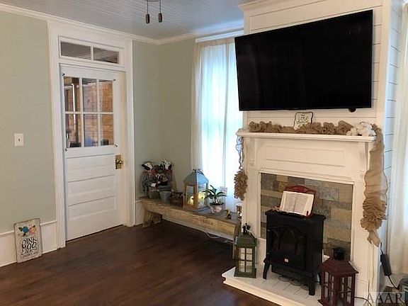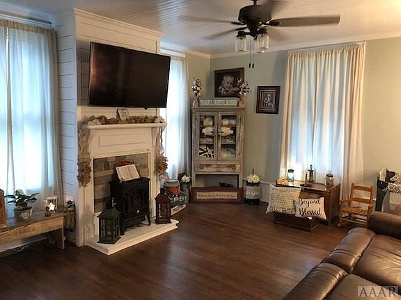 Beautiful country home sitting on 1.3 acres with mature trees. Large front porch beckoning you to sit awhile. Enter the front door into a charming foyer with fireplace and beautiful staircase. Formal living room has an original mantel and woodwork. Kitchen has been upgrade with custom countertops, an island and dining area. A sunroom with a pellet stove for those chilly days. Two bedrooms and a huge laundry and two full baths complete the first floor. Upstairs are 3 bedrooms and a full bath. There is a gas pack downstairs and baseboard heat/window a/c units upstairs. There is a large