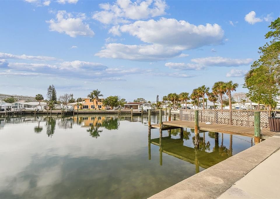 Excellent opportunity in the highly desired St. Pete Beach waterfront community of Bahia Shores. Nestled on a tropically landscaped corner lot with wide sparkling water views, this 2,019-square-foot block construction single-story home was impacted by Hurricane Helene is being offered "As-Is" for land value and is priced below the FEMA lot value of $932,045 (source PCOPA). The premier location and lot size (7,017 square feet) affords easy access to Boca Ciega Bay plus the Gulf of Mexico and is the perfect canvas to build a coastal waterfront dream home retreat. Features of this picturesque property include 82 feet of water frontage with an updated, reinforced seawall designed to accommodate a future pool as well as a spacious 31-foot x 10-foot durable composite dock with kayak launch, perfect for dolphin watching, enjoying the sweeping water vistas and savoring tropical breezes. Bahia Shores is a quick half-mile bike ride to award-winning St. Pete Beach and is located near restaurants, golf courses, Ft. Desoto, boutiques and is about a 15-minute commute to thriving downtown St. Petersburg.