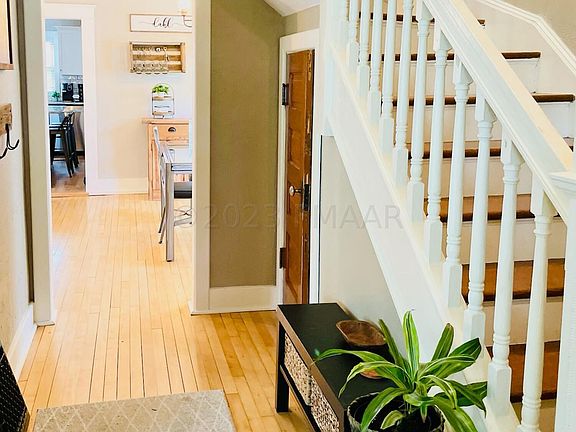 Charming historic Victorian ! farmhouse in Hawthorne District, close to Downtown Fargo and river walking paths. Renovated inside and out and a new poured foundation in 2000. Lots of space w 3 beds up, living/dining/den/kitchen/laundry on main, and wet bar, exercise room, family room, and 'sound proof' office/studio/bonus room in basement. Enjoy an oversized heated 2 stall garage/shop. Plenty of outdoor space with 2 decks, 3 season porch, and a concrete patio.
