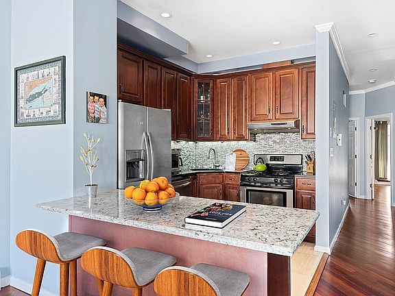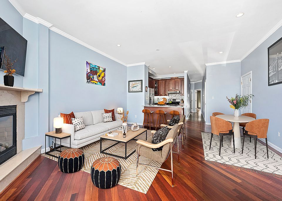 Perfectly situated in the heart of Bay Ridge, this wonderfully laid out 1,000+ square foot apartment offers lots of natural sunlight, 2+ Bedrooms, hardwood floors throughout and an open kitchen dining layout with a cornered fireplace. The kitchen has ample storage a dishwasher, and a breakfast bar. The master bedroom is nicely sized with an en-suite 3/4 bathroom and a large balcony. Additional features include: an in-unit, gas, washer and dryer; a storage room in the basement and 1 DEEDED PARKING Space. Showing by appt.